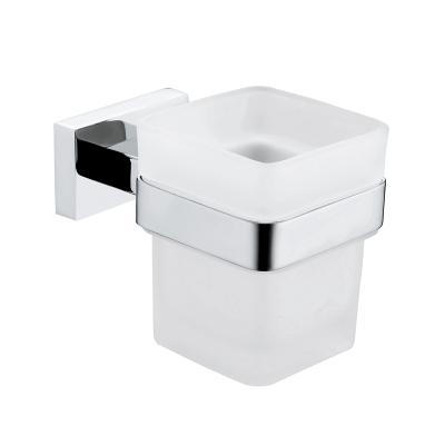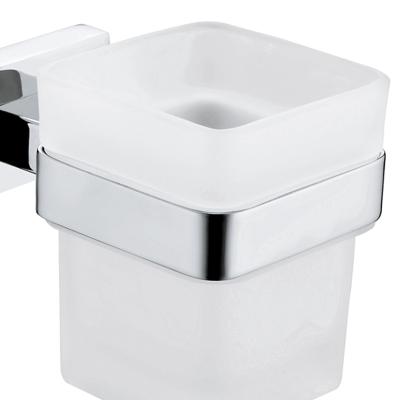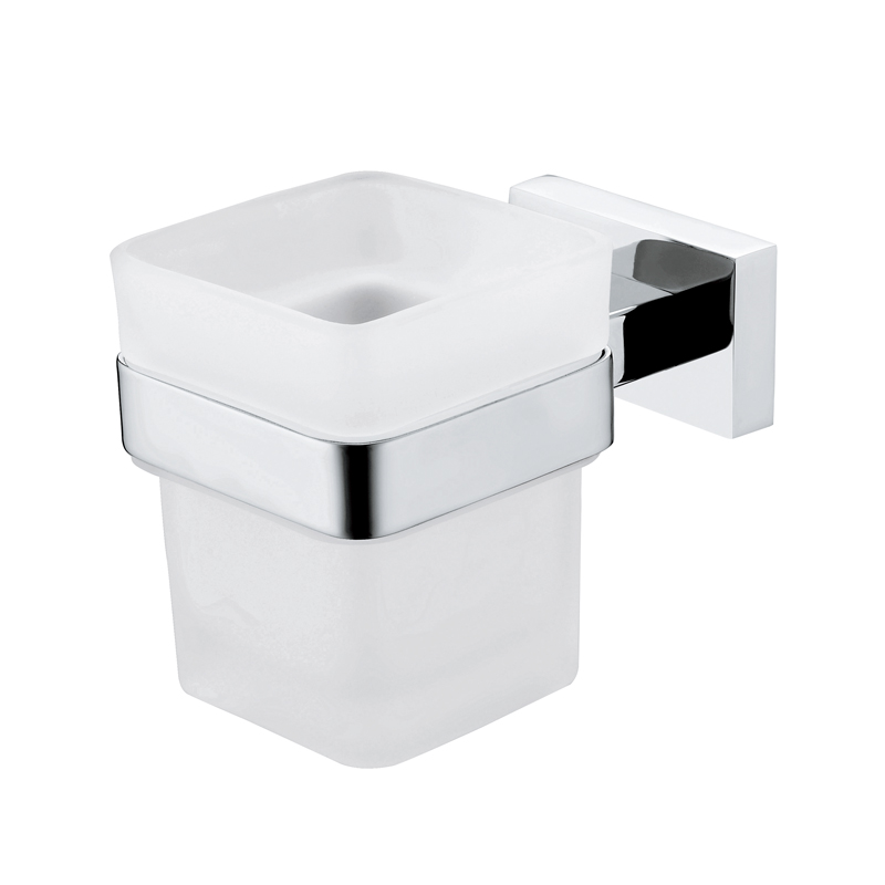 美乐思 卫浴用品白钢雾化玻璃 单杯 漱口杯架 套装 卫浴挂件34701