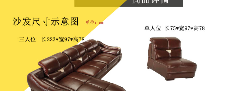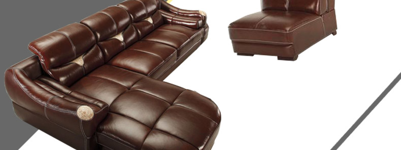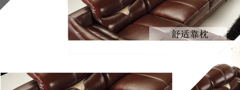 沃淇 现代进口真皮加真皮毛搭配功能头枕组合皮艺沙发 WQ6802