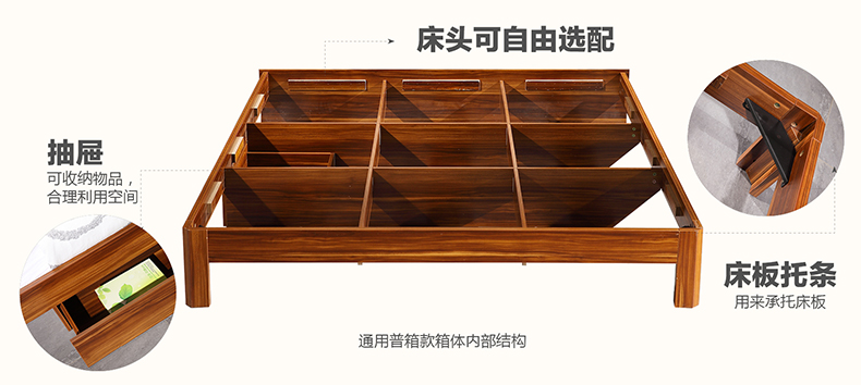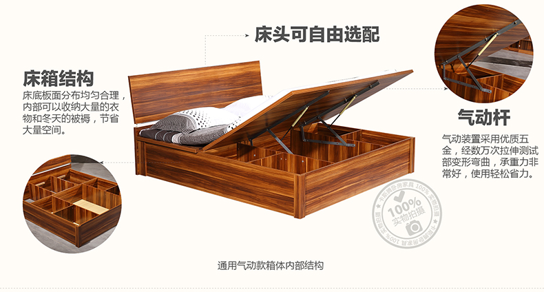 中海简约床 双人卧室床 1.8米1.5米高箱床 储物箱体床 单人床F911