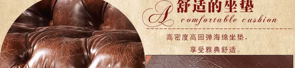 昂克雷特价美式复古怀旧经典款三人皮艺沙发中小客厅沙发A116