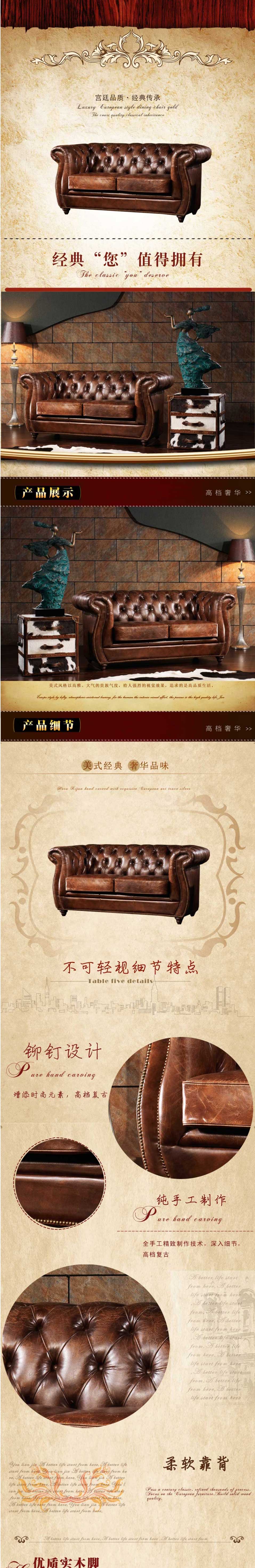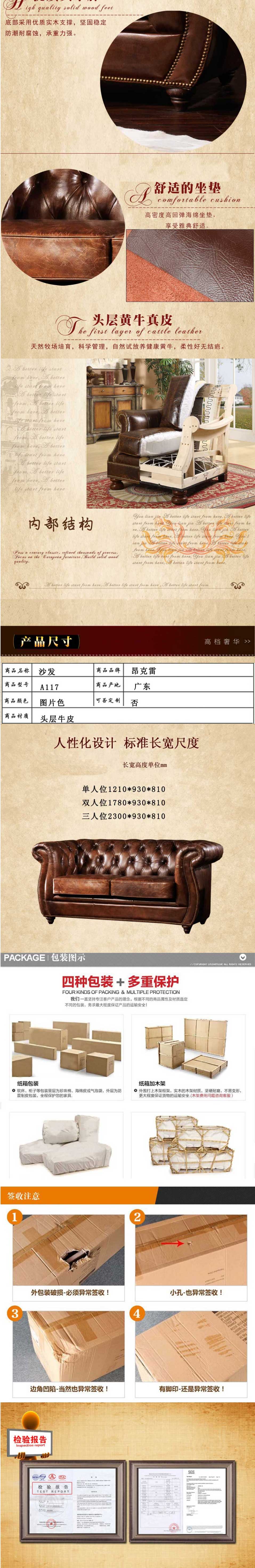 昂克雷美式复古真皮沙发头层牛皮客厅皮艺沙发组合A117