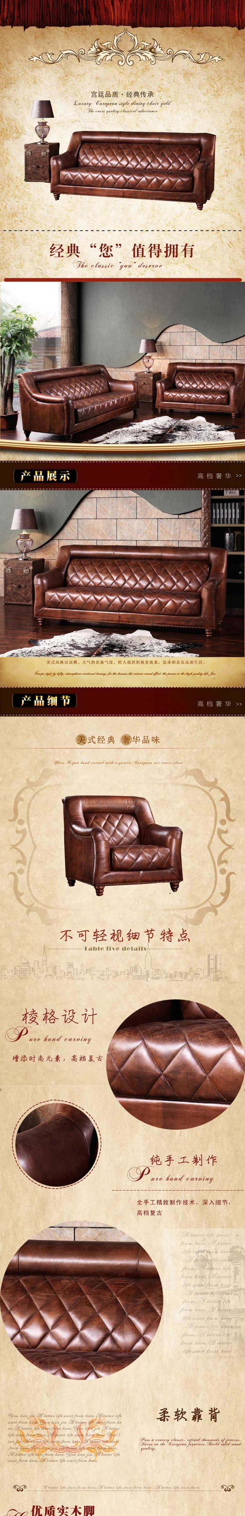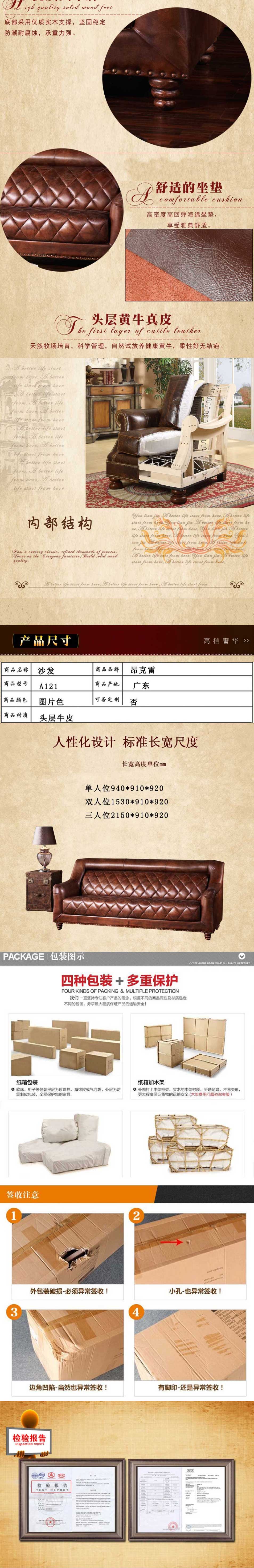 昂克雷 美式皮艺复古真皮头层牛皮美式户型单人双人三人123组合沙发A121
