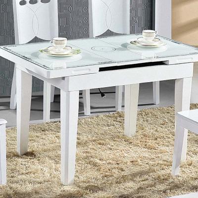 罗尔曼 现代简约伸缩餐桌椅组合 现代简约长方形折叠餐桌多功能钢化玻璃餐桌 2#方台 Y10#餐椅