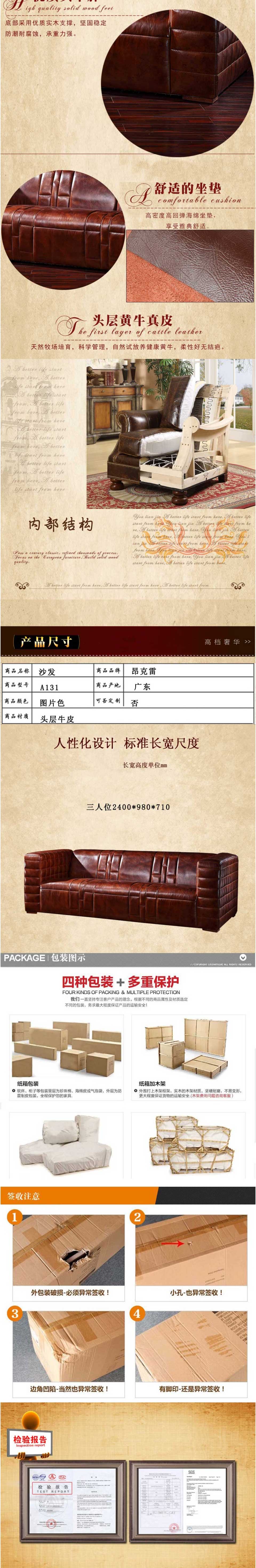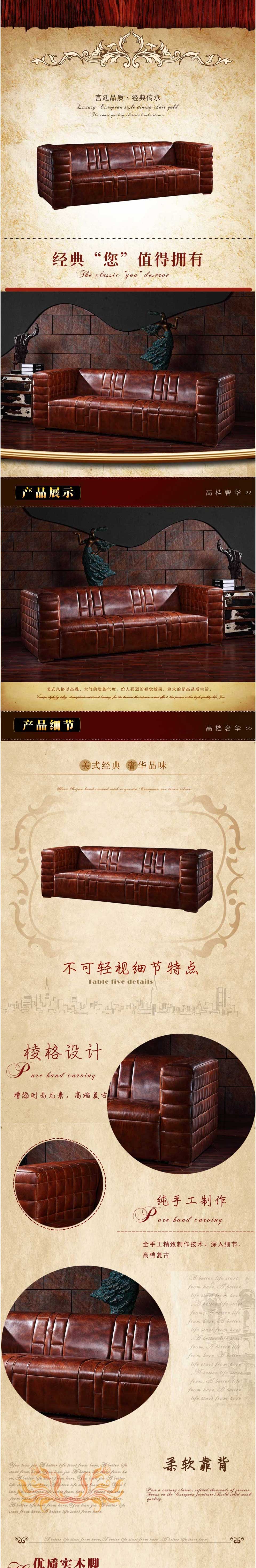 昂克雷美式个性真皮沙发 美式创意沙发复古客厅组合家具A131