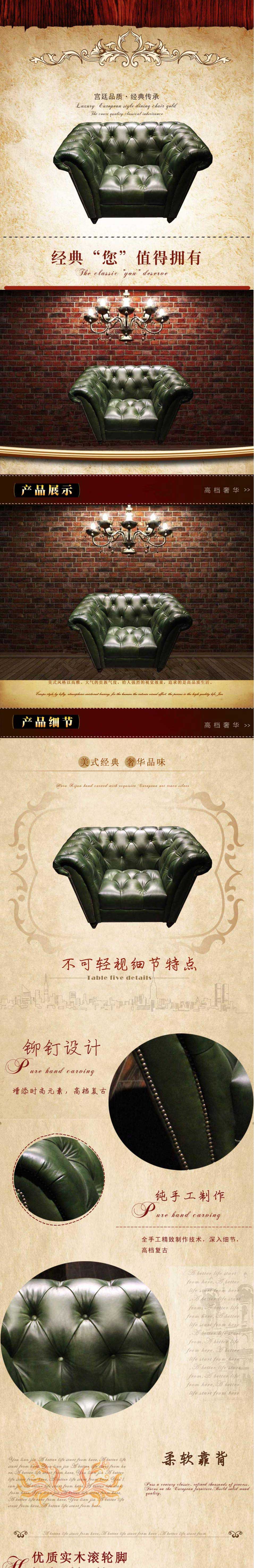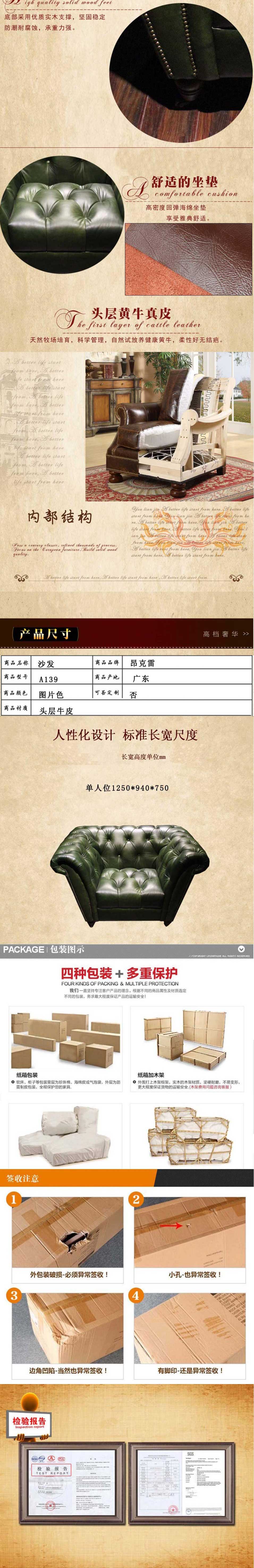 昂克雷 美式真皮沙发 高档复古进口头层牛皮简约沙发A139