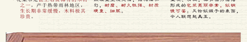 100%天然实木面板,结构均匀紧致,文理清晰优美,具有天然高强度耐磨性且不易开裂,散发着古朴雅致的气息,唯美精致,华丽圆润。