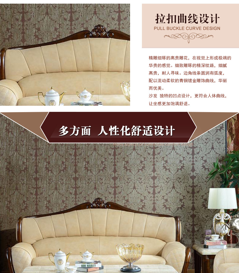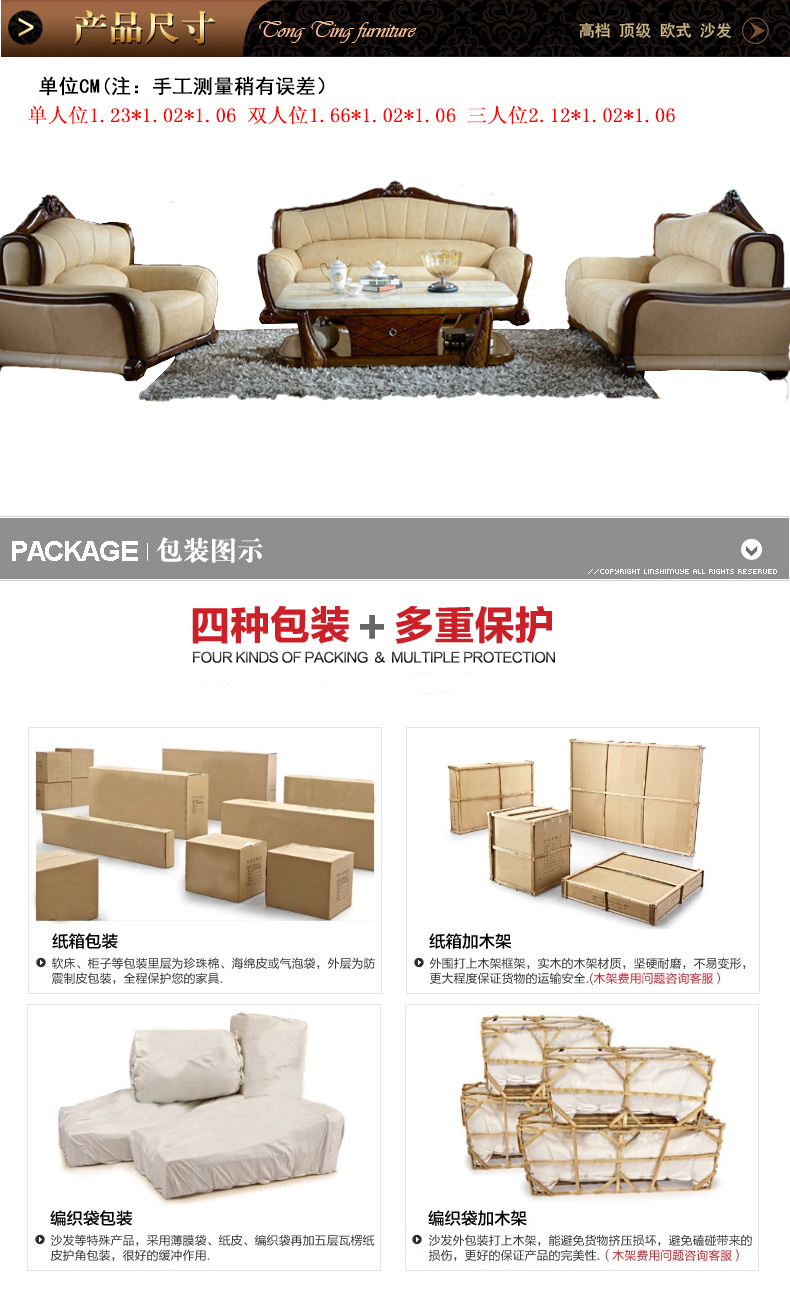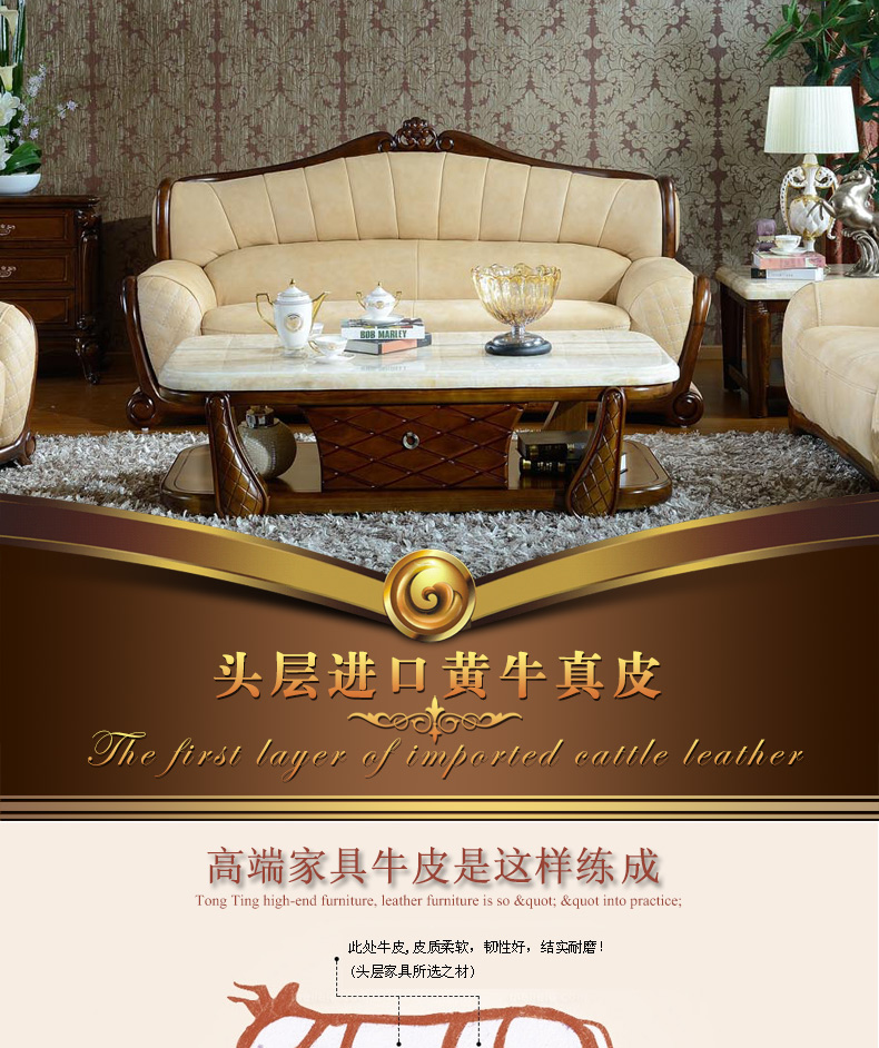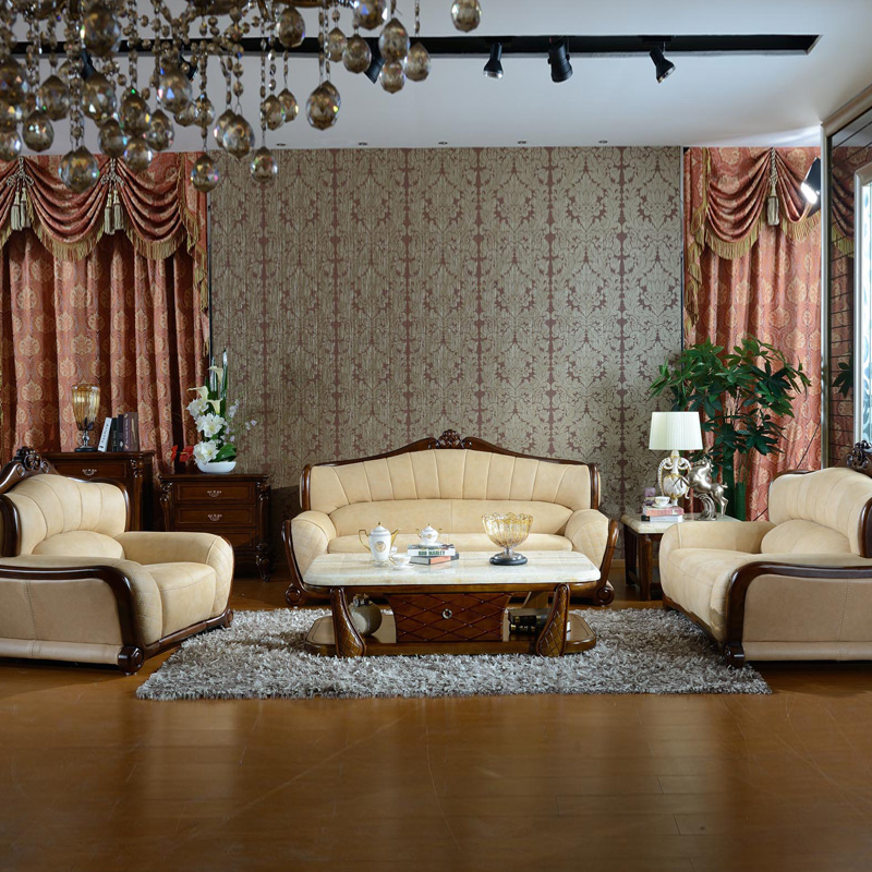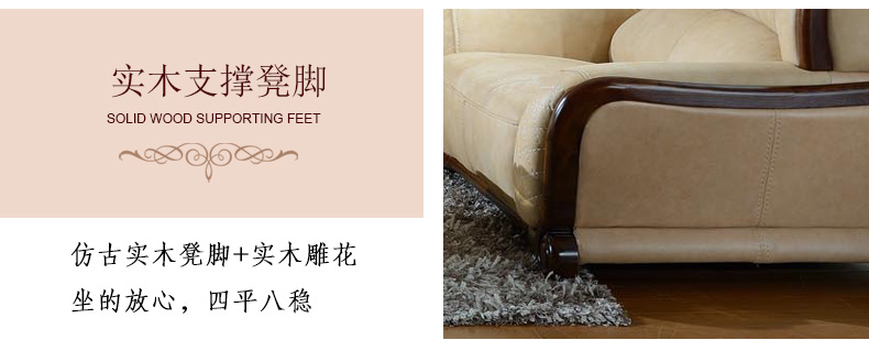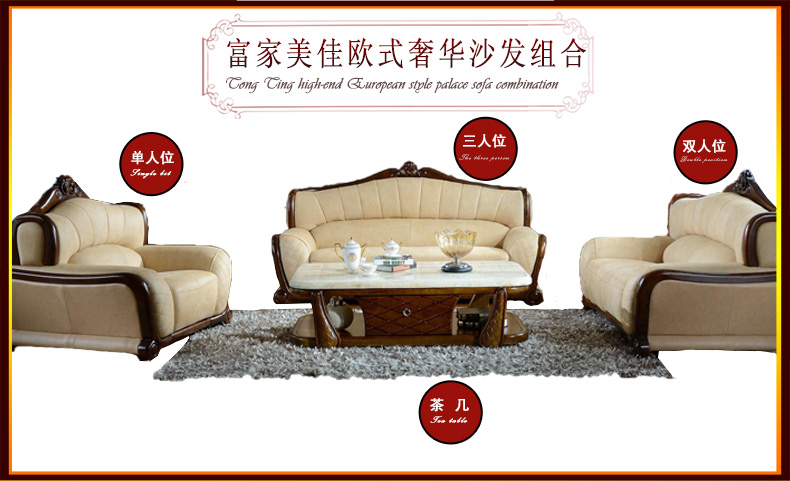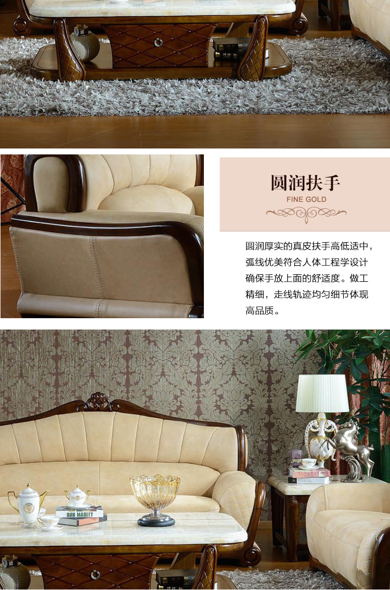 富家美佳系列实木框架沙发 皮艺沙发 实木茶几 欧式风格皮艺沙发B308
