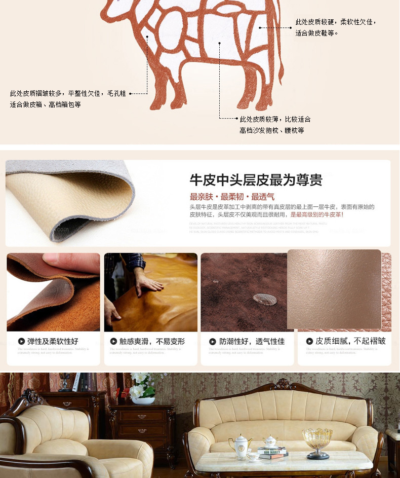 沙发质量很好,做工精致,接触面皮质很柔软,没色差,跟家里欧式家具很搭