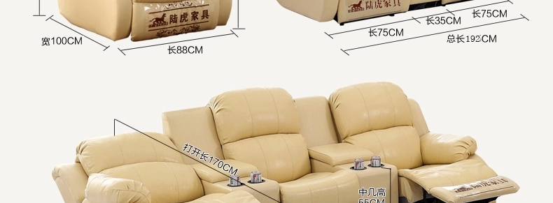 头层牛皮 移动储物中几 家庭影院 伸展可躺