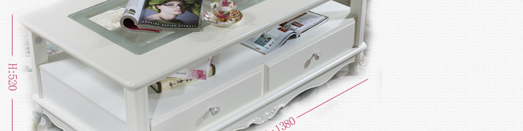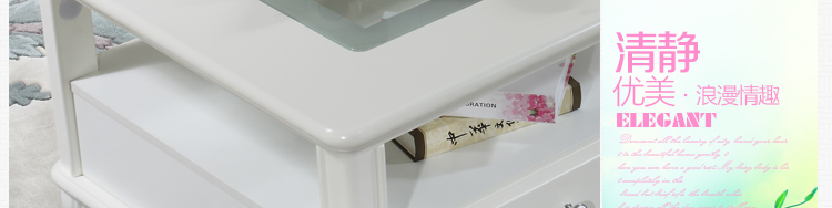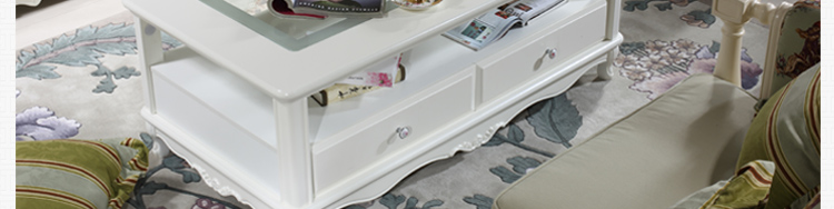 尚多家居 CJ302象牙白 韩式田园 实木长方形茶几