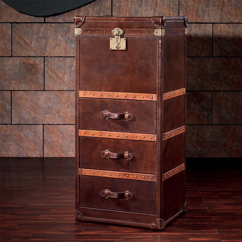 昂克雷复古经典头层牛皮箱柜美式风格收纳柜低调奢华L813