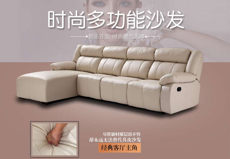 陆虎 真皮沙发 多功能小户型组合欧式真皮转角沙发 家庭影院沙发LH-905