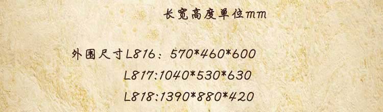 外围尺寸单位mm(长宽高) L816:570*460*600 L817:1040*530*630 L818:1390*880*420