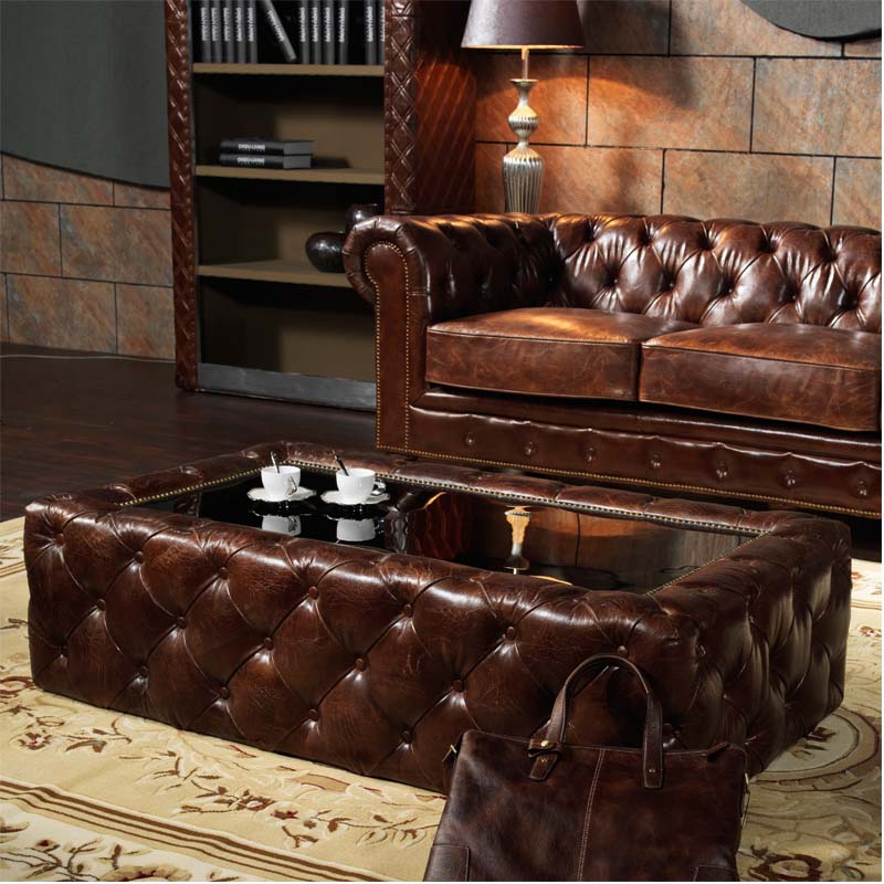 昂克雷美式高档仿古头层牛皮箱茶几 时尚简约茶几L825