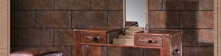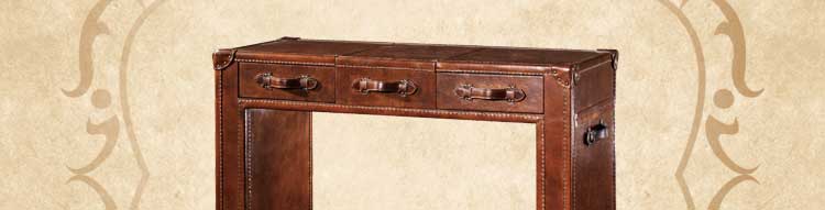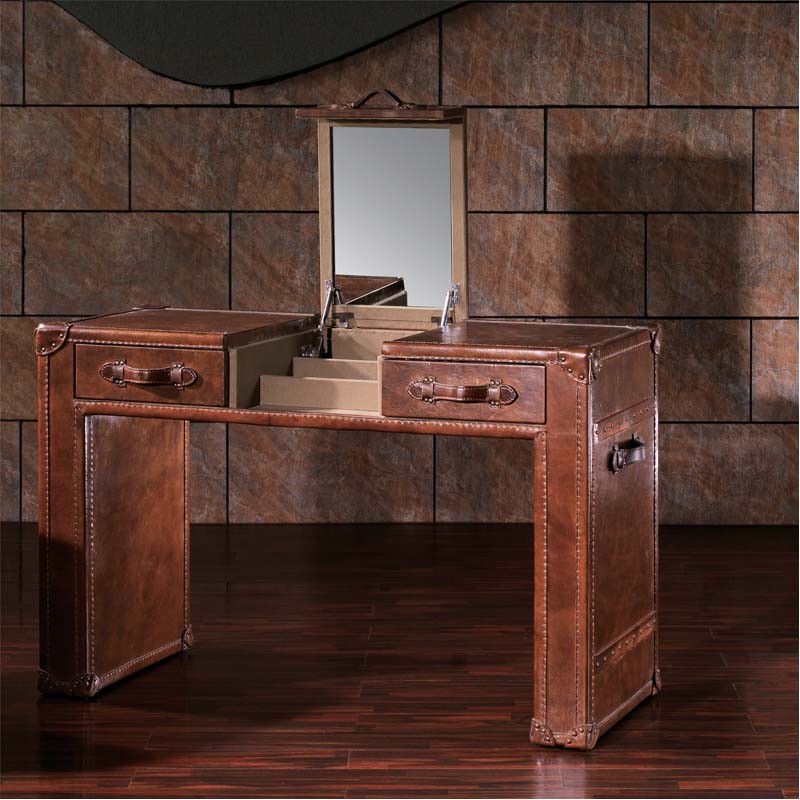 昂克雷高档精美仿古进口头层牛皮妆台妆凳 多抽储存妆台L811.L812