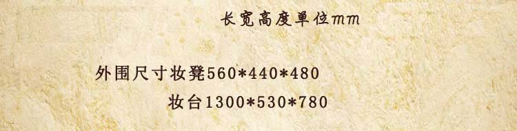 外围尺寸单位mm(长宽高) 妆凳560*440*480 妆台1300*530*780
