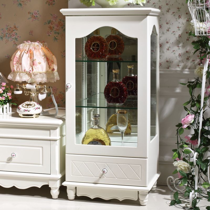 尚多家居 JG303象牙白 韩式田园 实木单门酒柜装饰柜