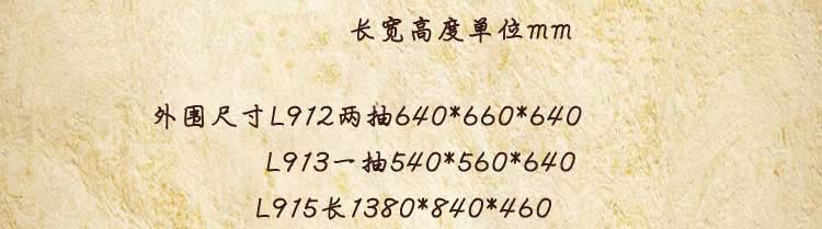 外围尺寸单位mm(长宽高) L912两抽640*660*640 L913一抽540*560*640 L915长1380*840*460