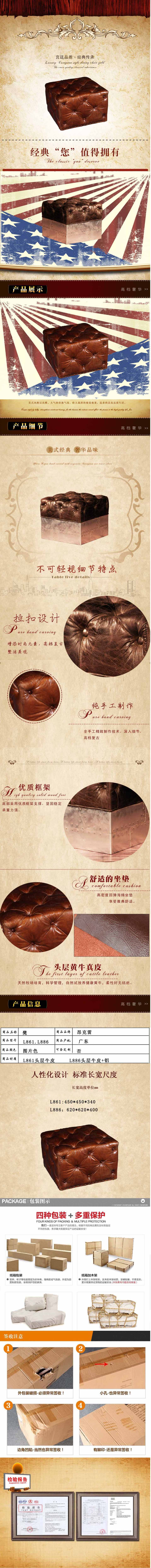 昂克雷 美式进口头层牛皮 沙发凳矮凳矮墩换鞋凳复古脚凳高端高档新古典L861.L886