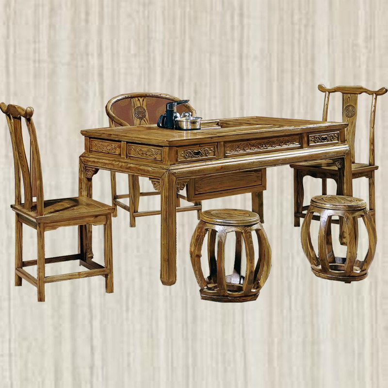 至盛千品 真功夫茶桌椅组合仿古南榆实木茶桌椅 明清中式特价8822