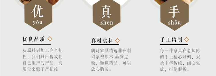 100%天然实木面板,结构均匀紧致,文理清晰优美,具有天然高强度耐磨性且不易开裂,散发着古朴雅致的气息,唯美精致,华丽圆润。