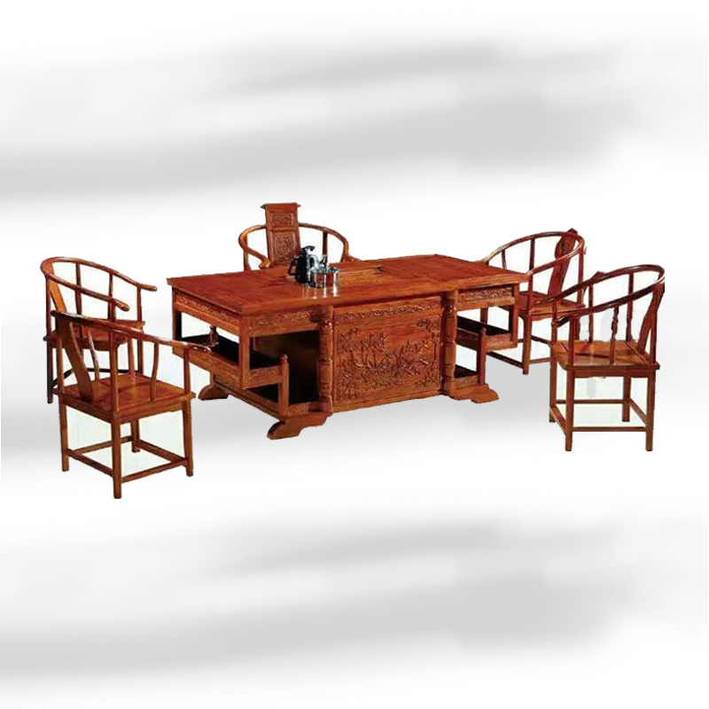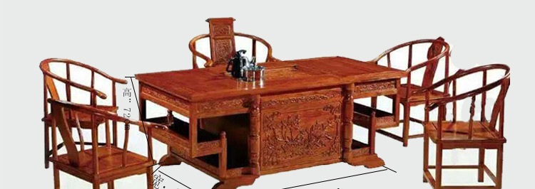 至盛千品 茶桌椅组合实木仿古中式茶台电磁炉小茶几多功能功夫泡茶桌榆木 8819