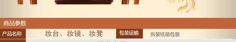 外围尺寸:妆台1100*500*760mm 妆镜618*53*861mm 妆凳456*456*480mm