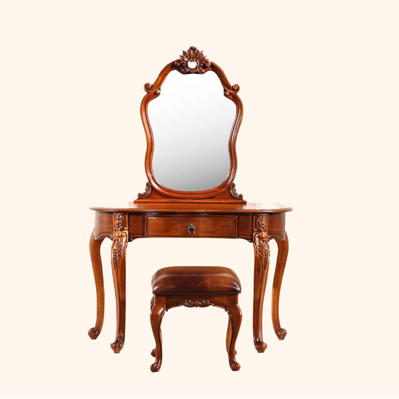 精益豪庭 美式梳妆台实木妆台 复古经典 妆台化妆镜妆台妆凳组合