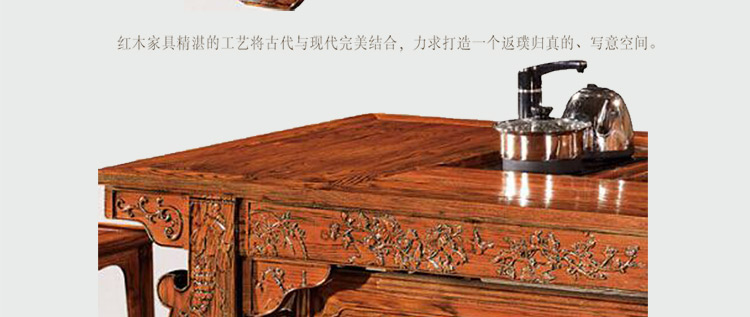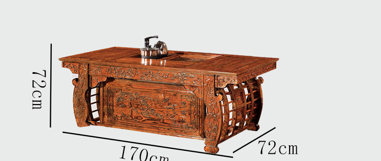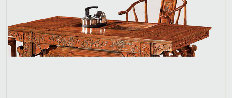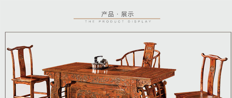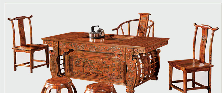 至盛千品 茶桌椅组合实木仿古中式茶台电磁炉小茶几多功能功夫泡茶桌榆木 8810