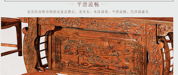 100%天然实木面板,结构均匀紧致,文理清晰优美,具有天然高强度耐磨性且不易开裂,散发着古朴雅致的气息,唯美精致,华丽圆润。