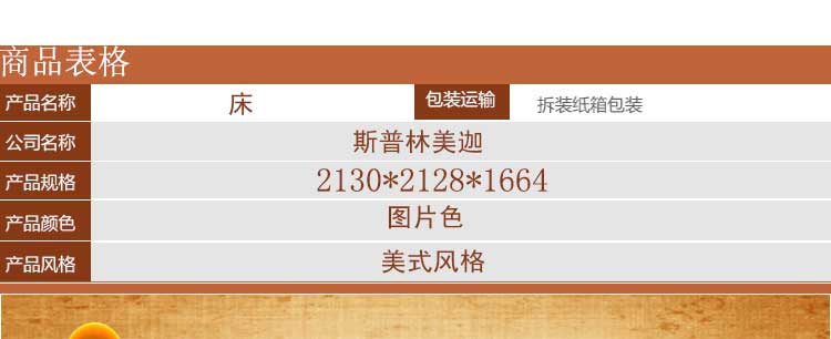 斯普林美迦美式床 实木床 床1.5M 床1.8M 床2.0 双人床 美式乡村床 简约美式床 7702