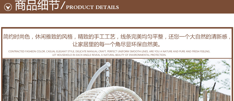 藤椅寄过来的速度挺快,包装也很到位,安装简单,试坐了一下挺牢固的,款式质量都挺好的,有朋友看着满意已经推荐了!