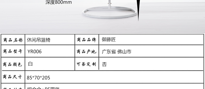 尺寸规格 85*70*205 产品材质 铝合金+PE圆藤