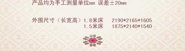外围尺寸单位mm(长宽高) 1.8米床 2190*2165*1605 1.5米床 1875*2140*1540
