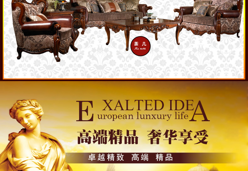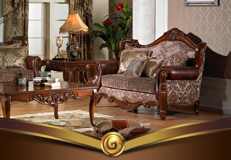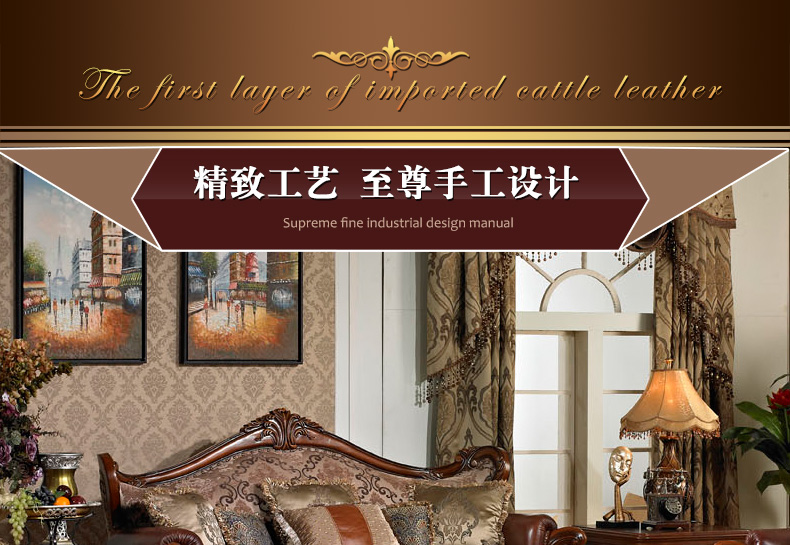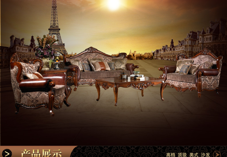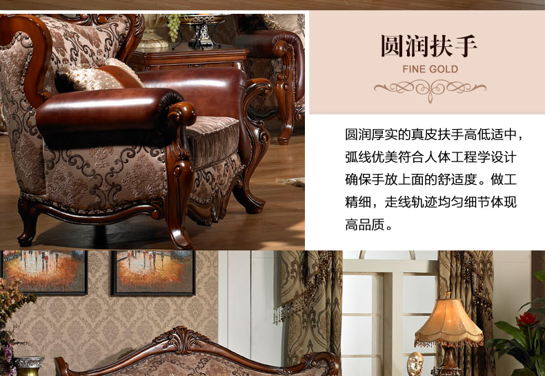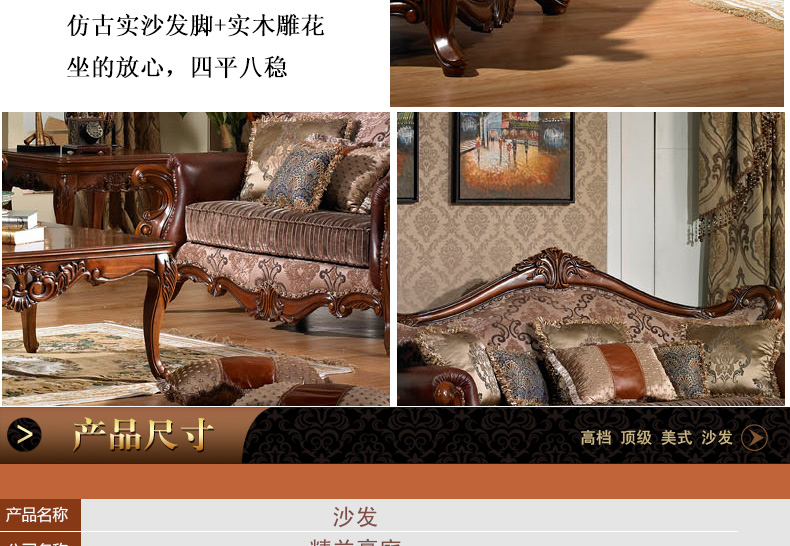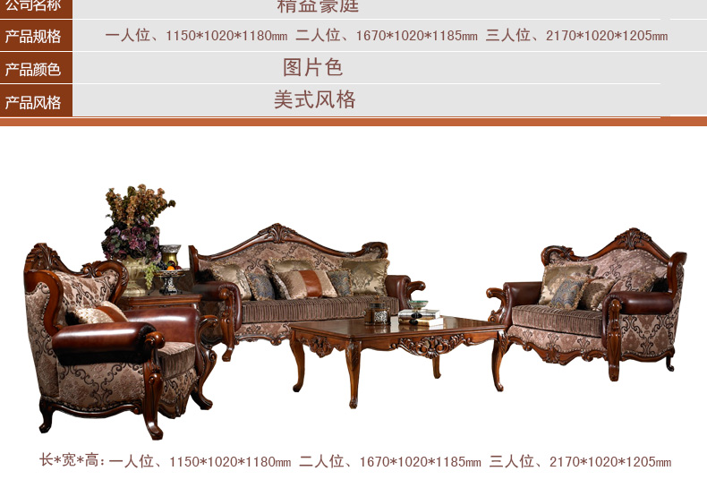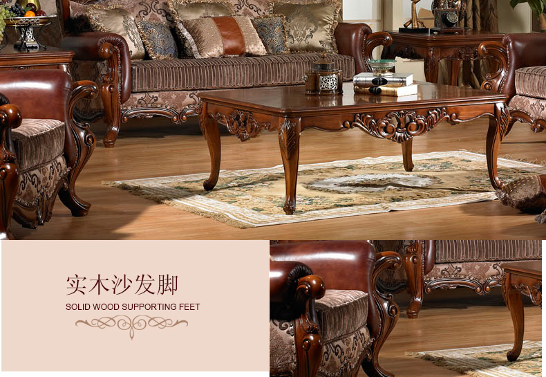 精益豪庭 品牌沙发美式皮艺布艺沙发美式沙发组合客厅实木沙发家具 8#
