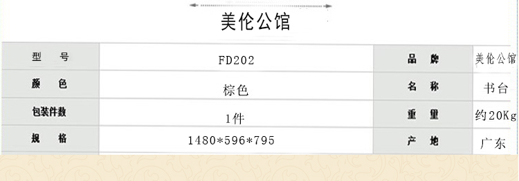 美伦公馆奢华大气大小户型实木雕花书台 大容量储物书台书桌FD-202