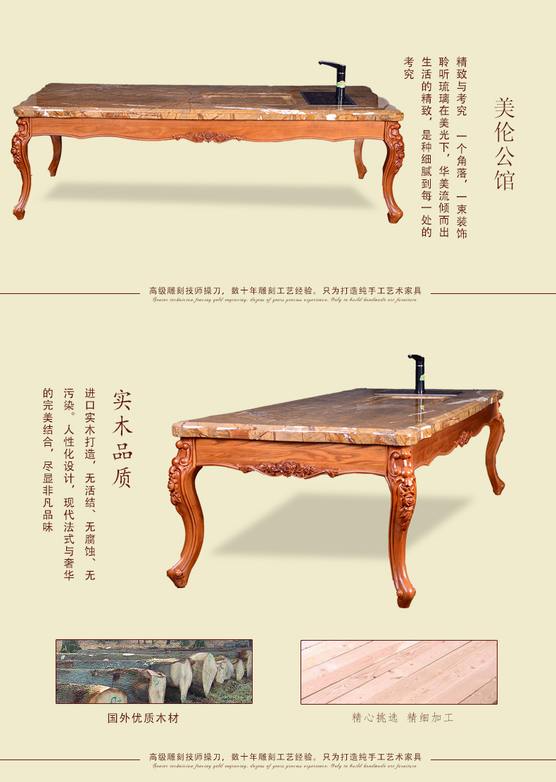 美伦公馆系列大理石台面茶几 欧式风格大茶几 家庭实用茶几FH207