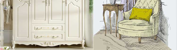 拉菲奥尼欧式雕花公主韩式田园象牙白四门衣柜T01#D