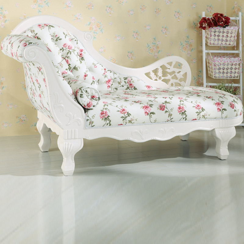 尚多家居 GF301象牙白 韩式田园 碎花图案 贵妃椅 躺椅 贵妃榻沙发