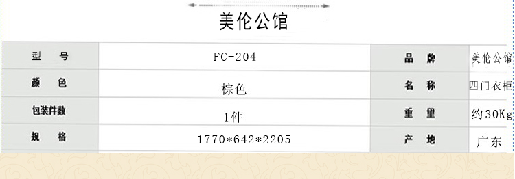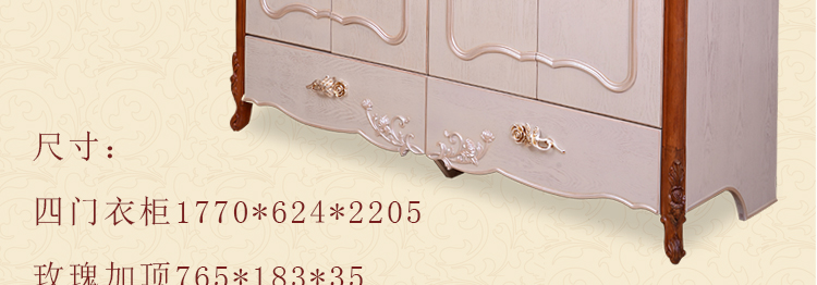 外围尺寸: FC-204四门衣柜1770*624*2205; 玫瑰加顶765*185*35