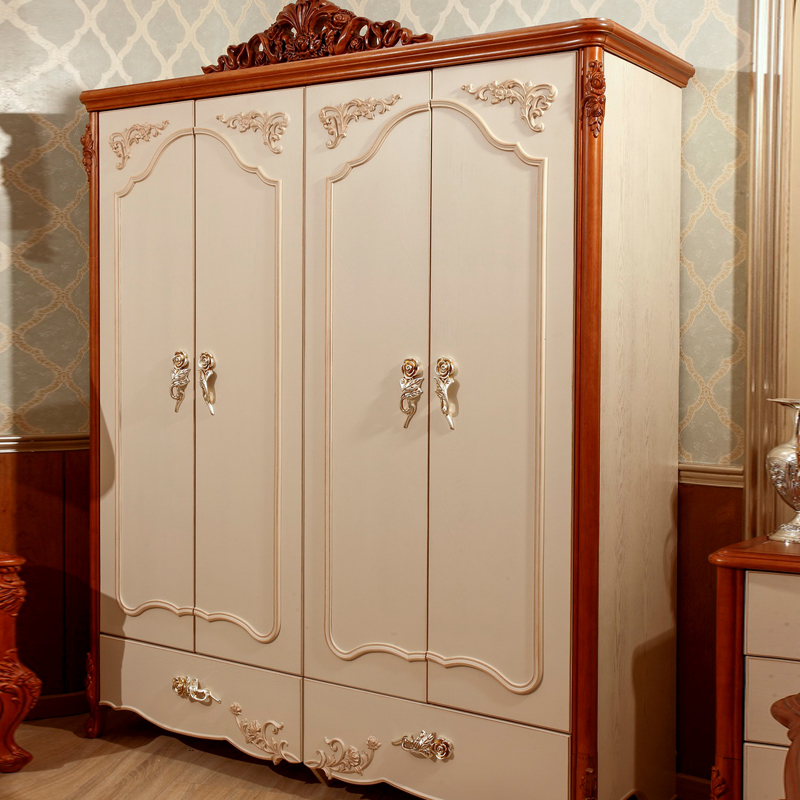 美伦公馆欧式风格实木衣柜 时尚雕花四门收纳衣柜FC-204
