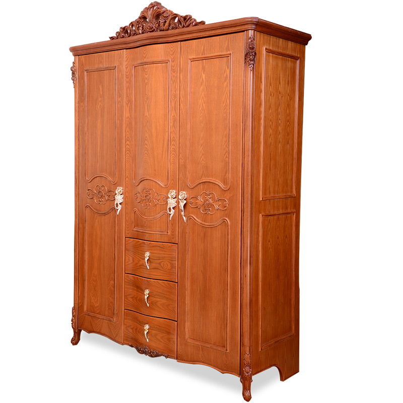 美伦公馆实木衣柜 实木平开门衣柜欧式储物三门衣柜FC-203