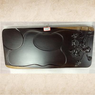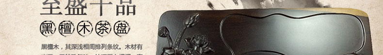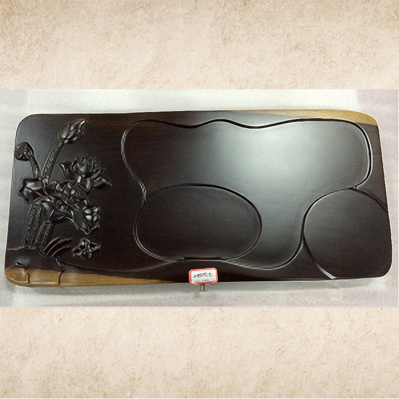 至盛千品 黑檀木茶盘排水 整块实木 茶盘功夫茶具茶海大号平雕茶台 平雕荷花