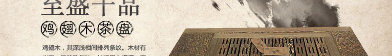 至盛千品 鸡翅月牙木茶盘排水 整块实木 茶盘功夫茶具茶海大号811#鸡翅君子兰