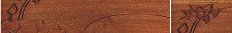 100%天然实木面板,结构均匀紧致,文理清晰优美,具有天然高强度耐磨性且不易开裂,散发着古朴雅致的气息,唯美精致,华丽圆润。