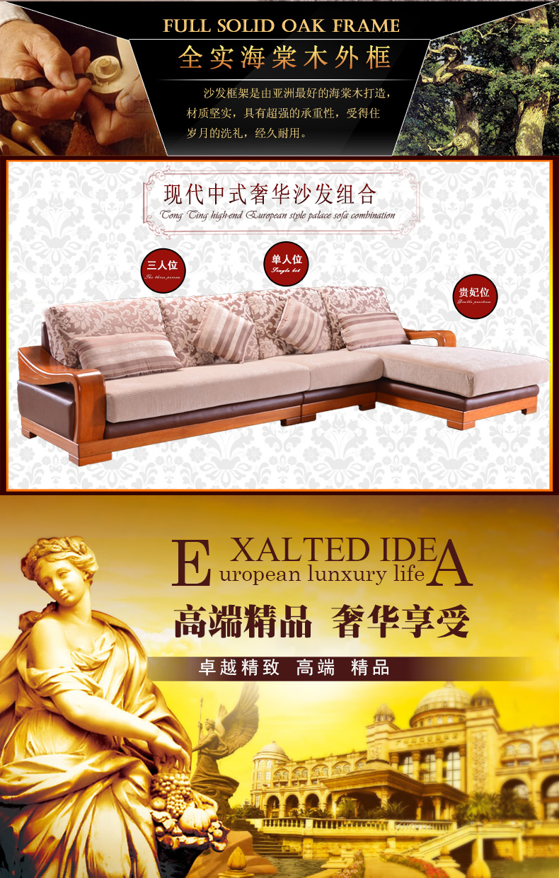木匠大师布艺系列实木框架沙发 现代中式风格贵妃组合沙发