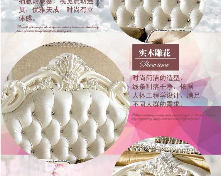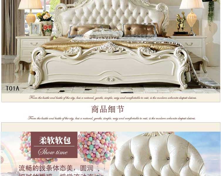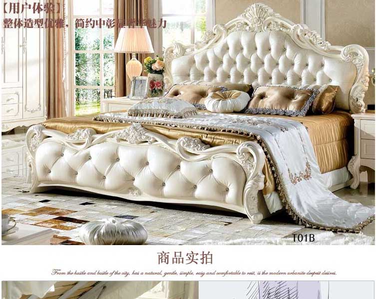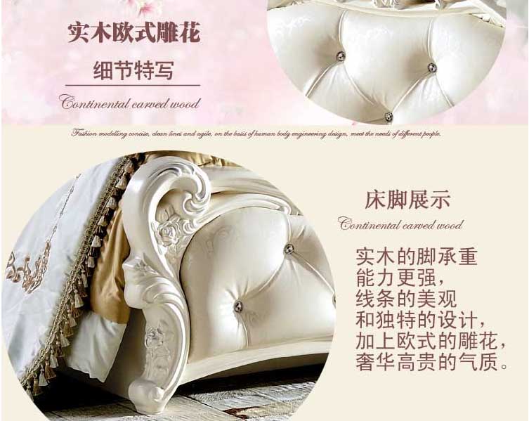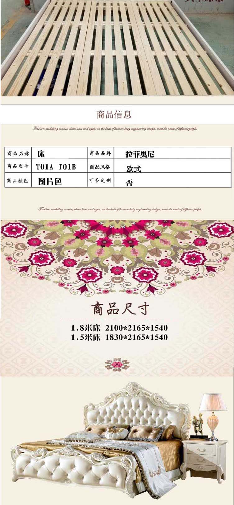 拉菲奥尼新款欧式床双人床1.8米雕花床法式公主床1.5米单人床婚床T01A/B