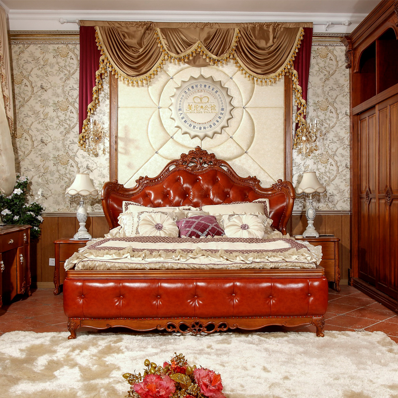 美伦公馆皮艺实木床欧式风格实木框架高端大气舒适皮艺床FA-213