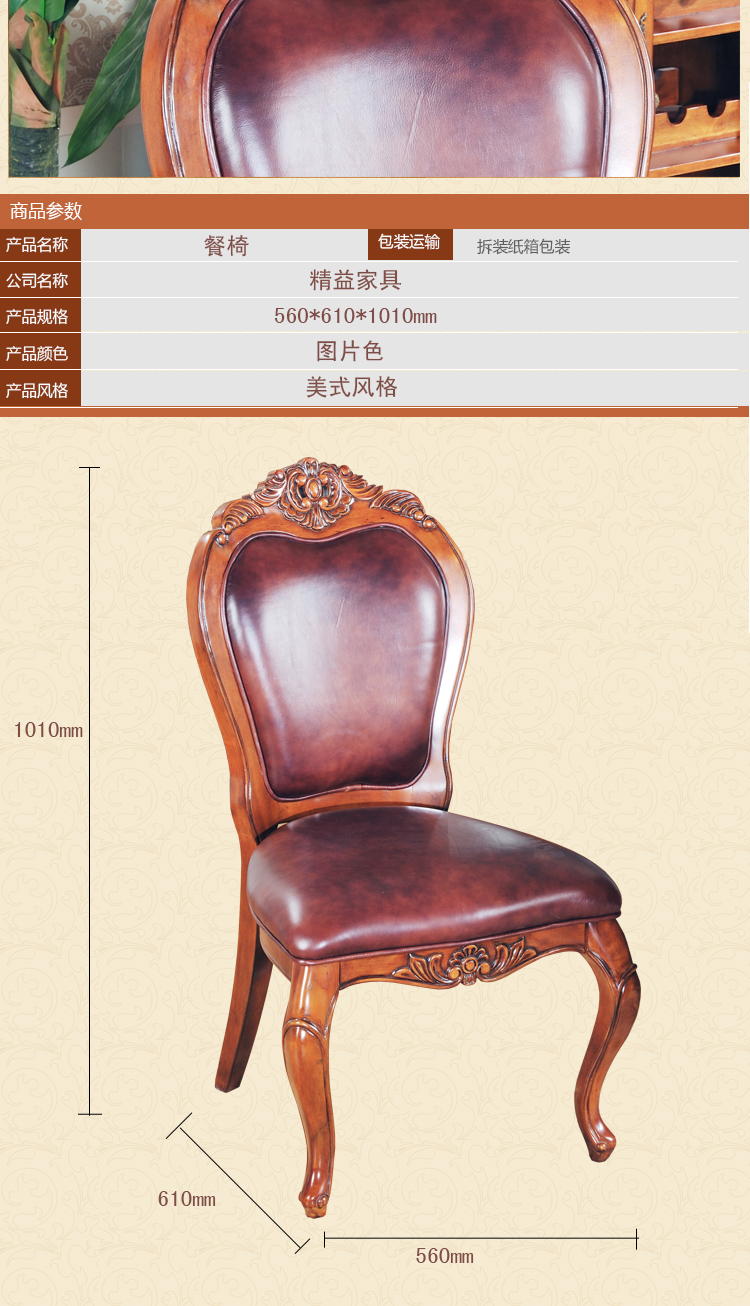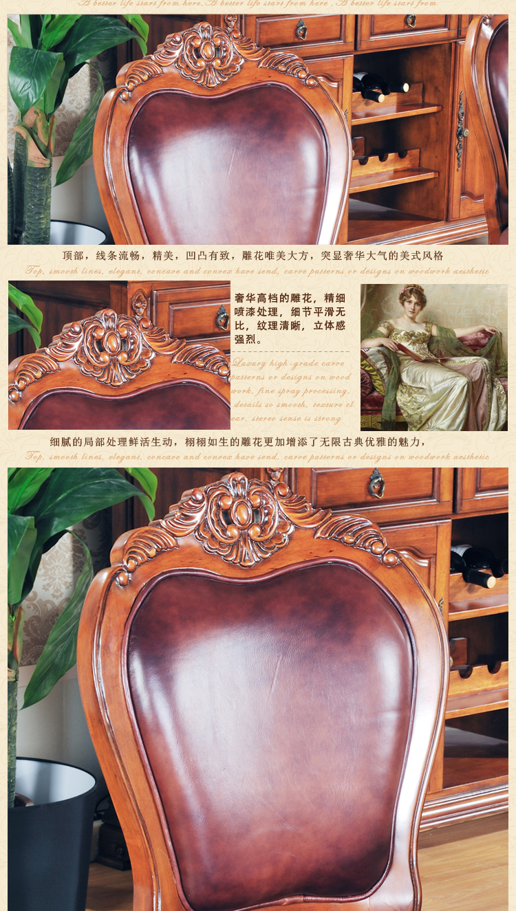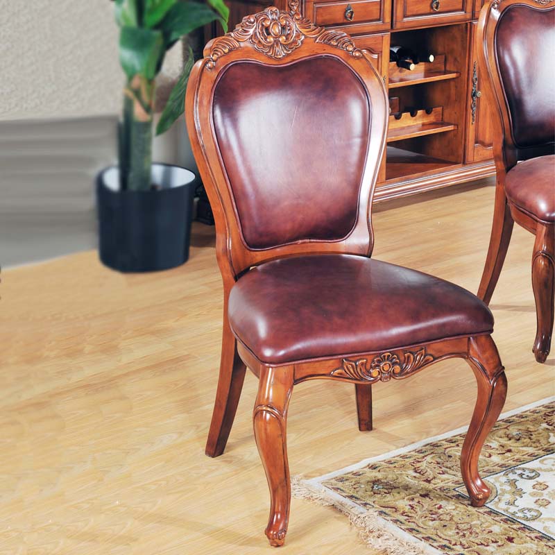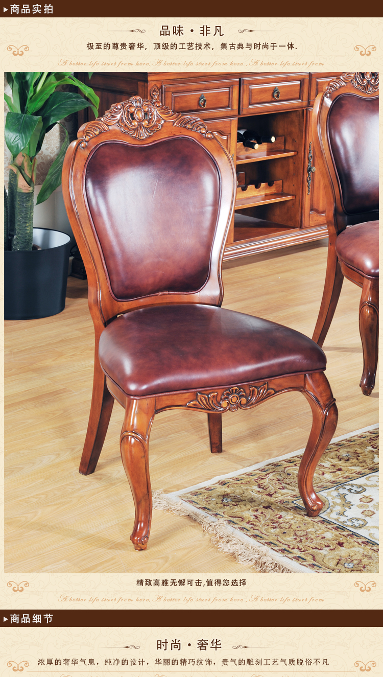精益豪庭 新古典美式实木餐椅 酒店卧室橡木餐椅 高端美式雕花皮艺251餐椅