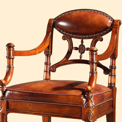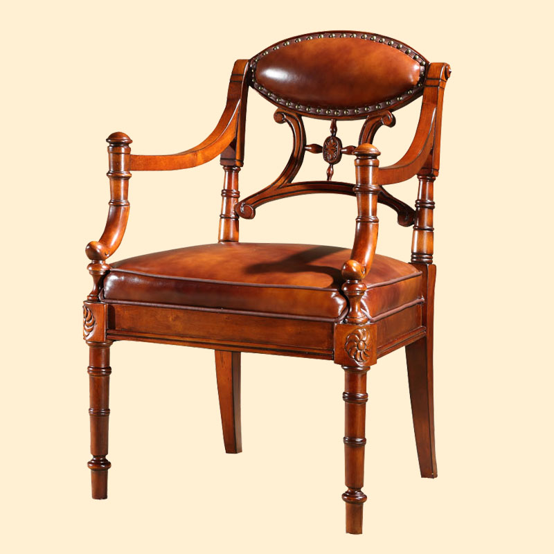 精益豪庭 美式全实木书椅 书房办公椅子真皮休闲电脑椅美式餐椅 250书椅